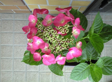 挿し木、二度目の挑戦でやっと根付いた赤い紫陽花。