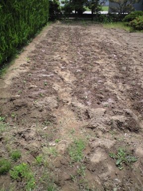 2列になってもいいから、と言われて、終わってみたら4列半になりました。しかもここ、庭のくせに家庭菜園なんて可愛いもんじゃなく、立派に畑でした。