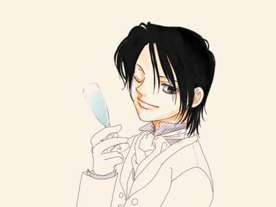 クリスマス、ギルはリュイのところへ向かうも間に合わず、リュイは貴女とシャンパンを楽しむ、って図。